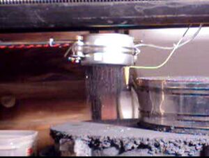 This movie includes a closeup shot of an automatic abrasives applicator. This applicator was originally a sex toy cut to fit strapped to the side of a tuna can. Later in the polishing phase an automatic liquid polishing compound applicator was made using a peanut butter jar and a cheap electric tire pump.
